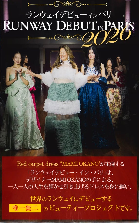 「ランウェイデビュー・イン・パリ」は、MAMI OKANOがプロデュースするビューティープロジェクトです。あなたの魅力を引き出すドレスを纏い、専門家のビューティートレーニングを経て、パリのランウェイデビューを果たします。