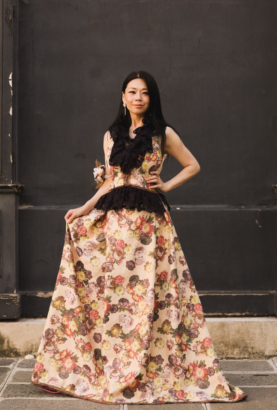 そのドレスを纏い、歴史あるSalle Wagramの舞台でスポットライトを浴びた瞬間、まるで人生の主人公になったかのような、震えるような感動に包まれました。