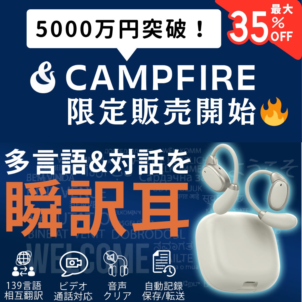 【累計支援5000万円突破!】世界をもっと身近に。139言語を瞬時に翻訳!耳で会話・動画・通話が楽しめるノイキャンAIイヤホン「VORMOR V13」がCAMPFIREにて限定割引価格で先行販売中