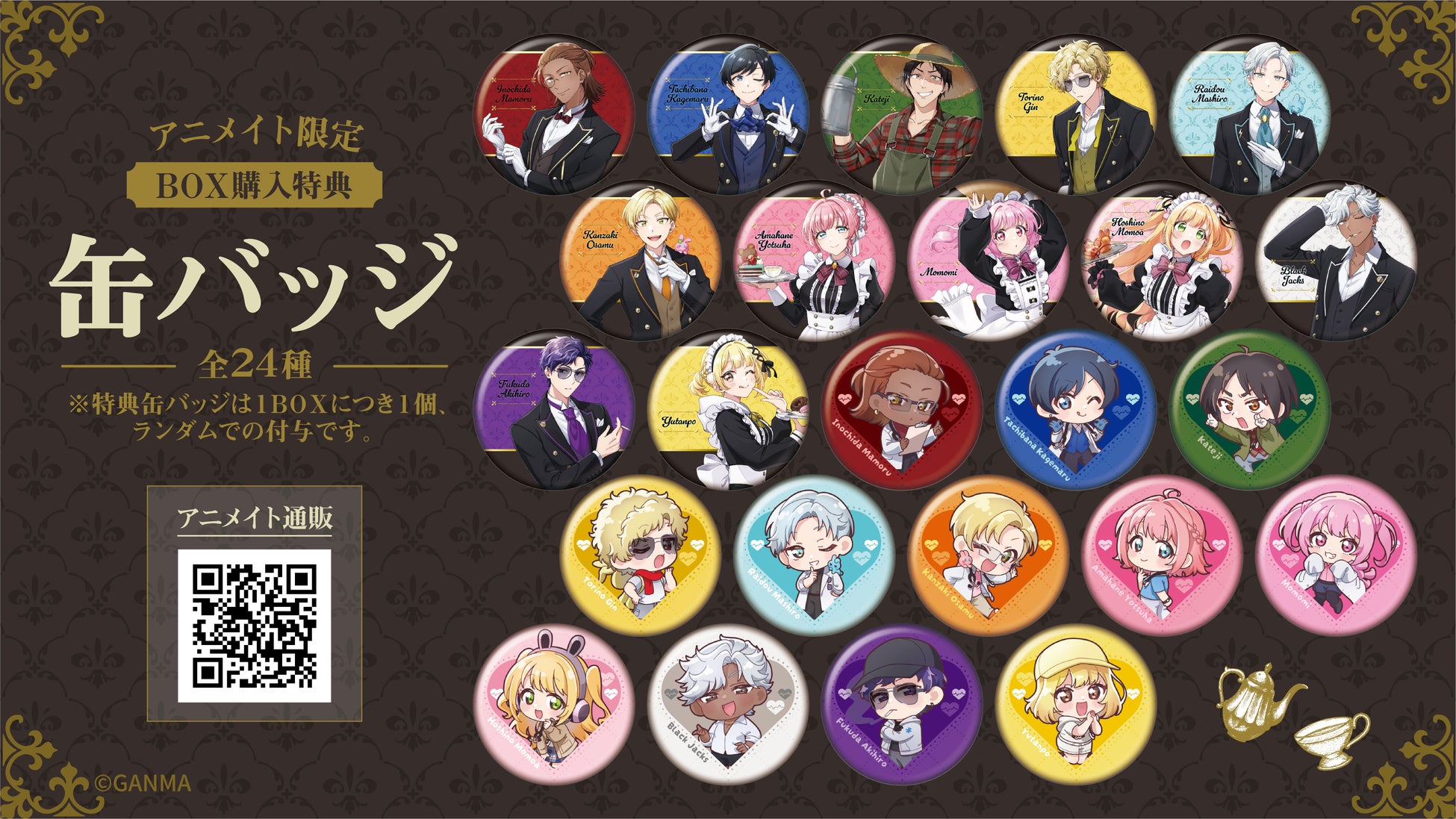 アニメイト店頭およびアニメイト通販にて、1BOXご購入のお客様に、購入特典として「缶バッジ(全24種の中からランダムで1個)」をプレゼントいたします。