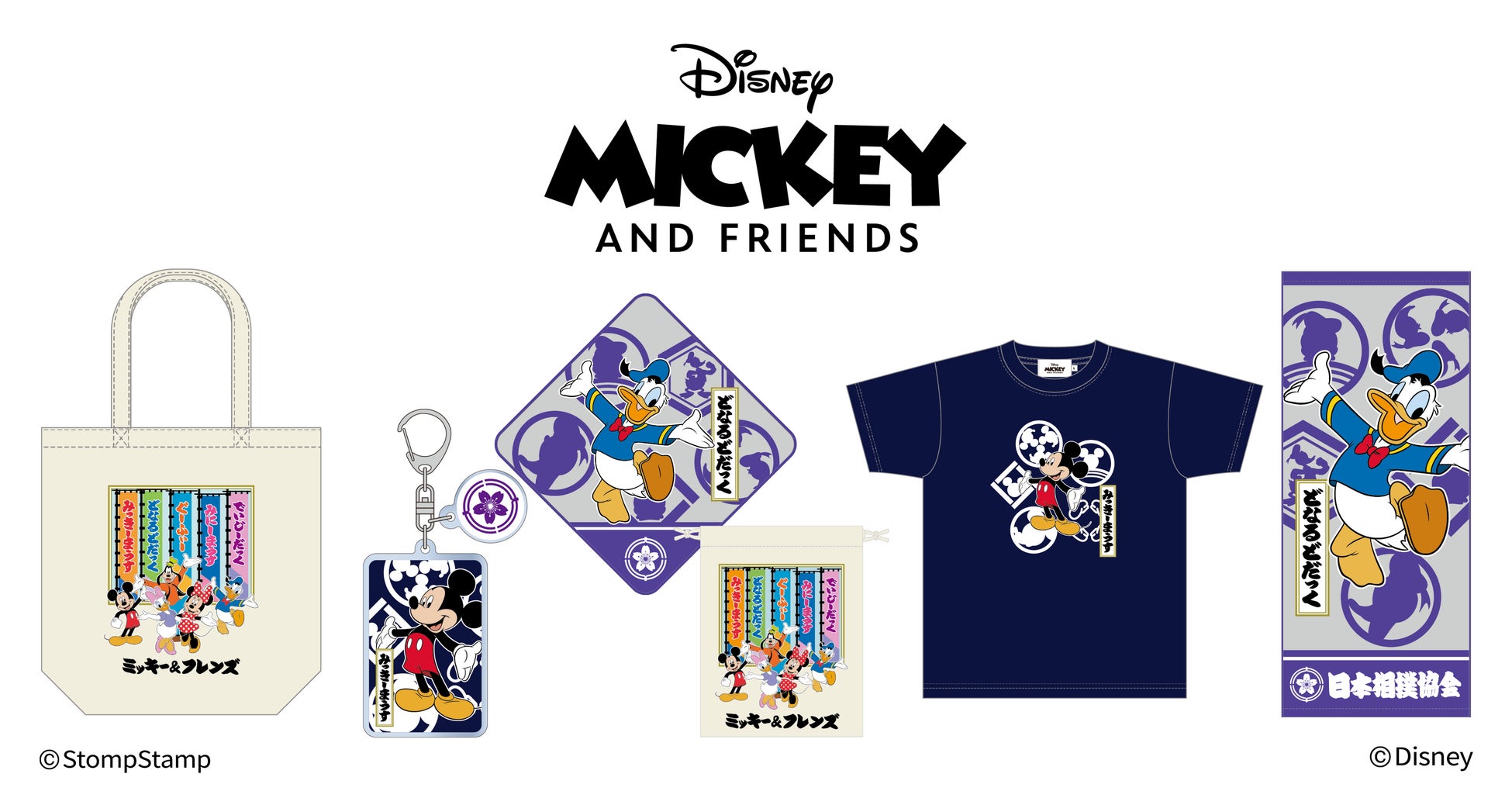 「ミッキー&フレンズ」が、大相撲をテーマにした限定デザインで新登場!Tシャツやタオル、トートバッグなど、ミッキーと仲間たちが描かれた、ファン必見のアイテムが勢ぞろい。