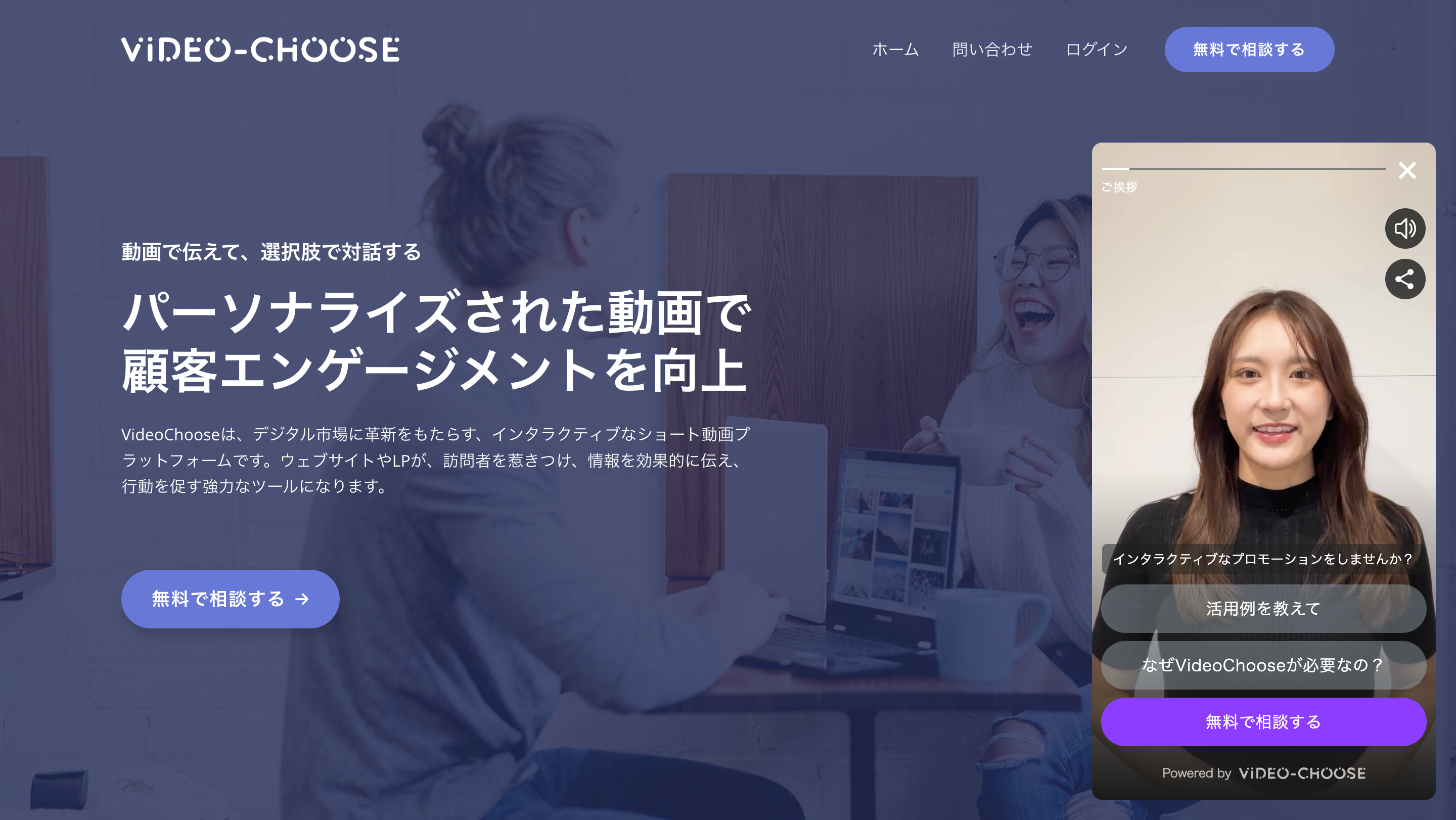 VideoChoose(ビデオチューズ)は、それらの課題を一挙に解決し、顧客体験を高め、受注数や資料請求・問い合わせなどを増加させるための国内初※1のソリューションです。