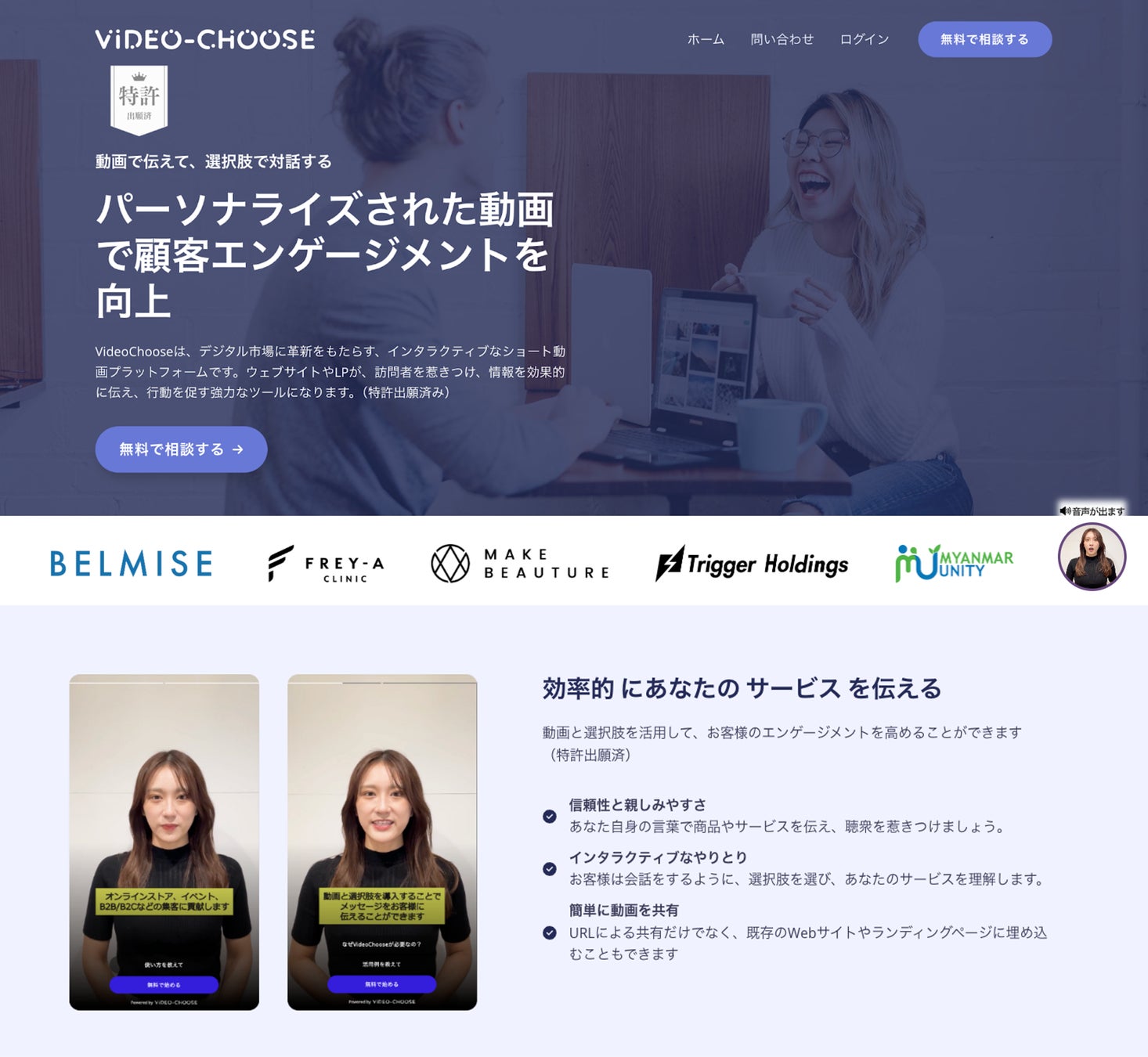 動画版チャットボット「VideoChoose」(特許出願済)、正式リリースからわずか1ヶ月で15社導入〜 CVR向上などの成果創出 〜