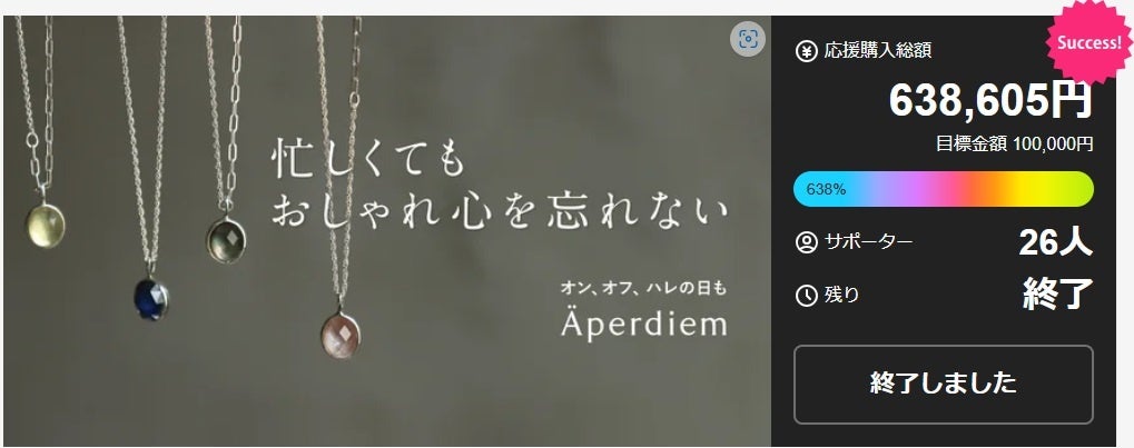日本発ジュエリーブランド「Äperdiem(アペルディエム)」は、デザインから製造、検品まで一貫して国内で行っています。昨年夏には、ダブレットストーンを使用した4Wayネックレスのプロジェクトを実施し、目標を大きく上回る応援購入を達成!