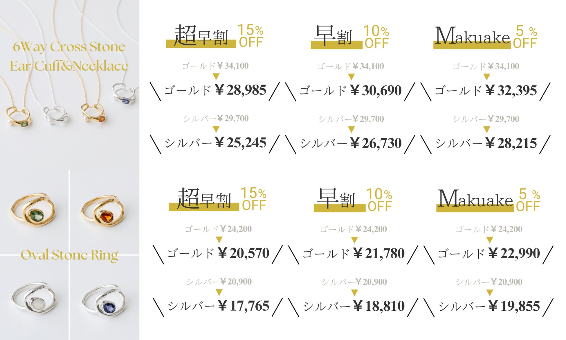 ゴールド定価24,200円 (超早15%OFF 限定6個→販売中、早割10%OFF限定10個→販売中、Makuake限定価格→販売中)