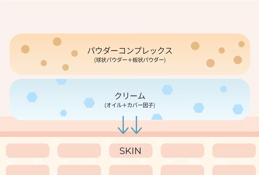 クリームベースとパウダーコンプレックスが密着して、すき間なく肌悩みをしっかりカバーします。