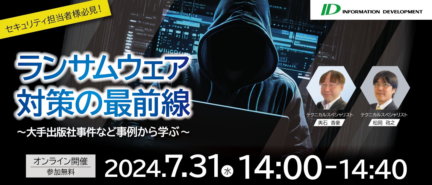 インフォメーション・ディベロプメント、セキュリティ担当者様向けウェビナー『ランサムウェア対策の最前線~大手出版社事件など事例から学ぶ~』を開催