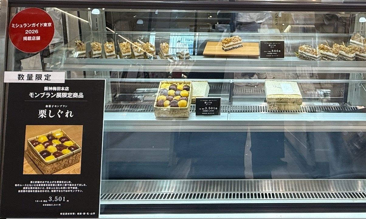 阪神梅田本店1階の食祭テラスで開催された、さまざまなモンブランや栗を使ったスイーツが集まるイベント。スイーツ芸人のスイーツなかのさんが、栗好きもうなるモンブランをセレクト。会場で「できたて」のモンブランをパフェやアシェットデセールとして楽しめるほか、テイクアウト用の焼き菓子や、同時開催の「栗きんとん祭」も行われました。