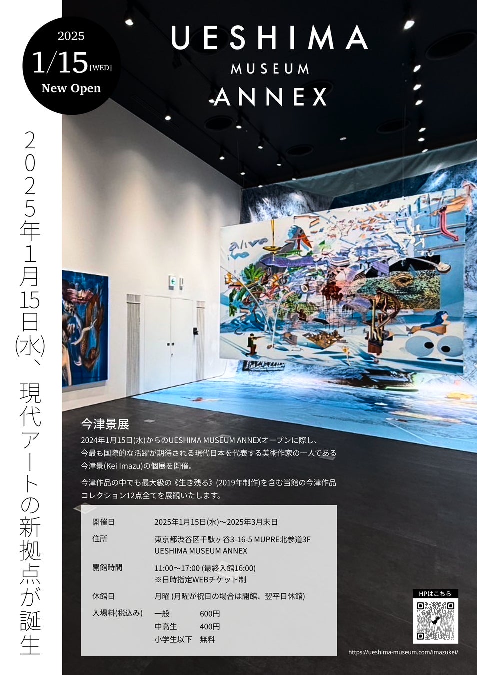 We are pleased to announce that tickets are now available on our website (http://ueshima-museum.com/imazukei) for the Kei Imazu exhibition, which marks the opening of the UESHIMA MUSEUM ANNEX on Wednesday, January 15, 2025.