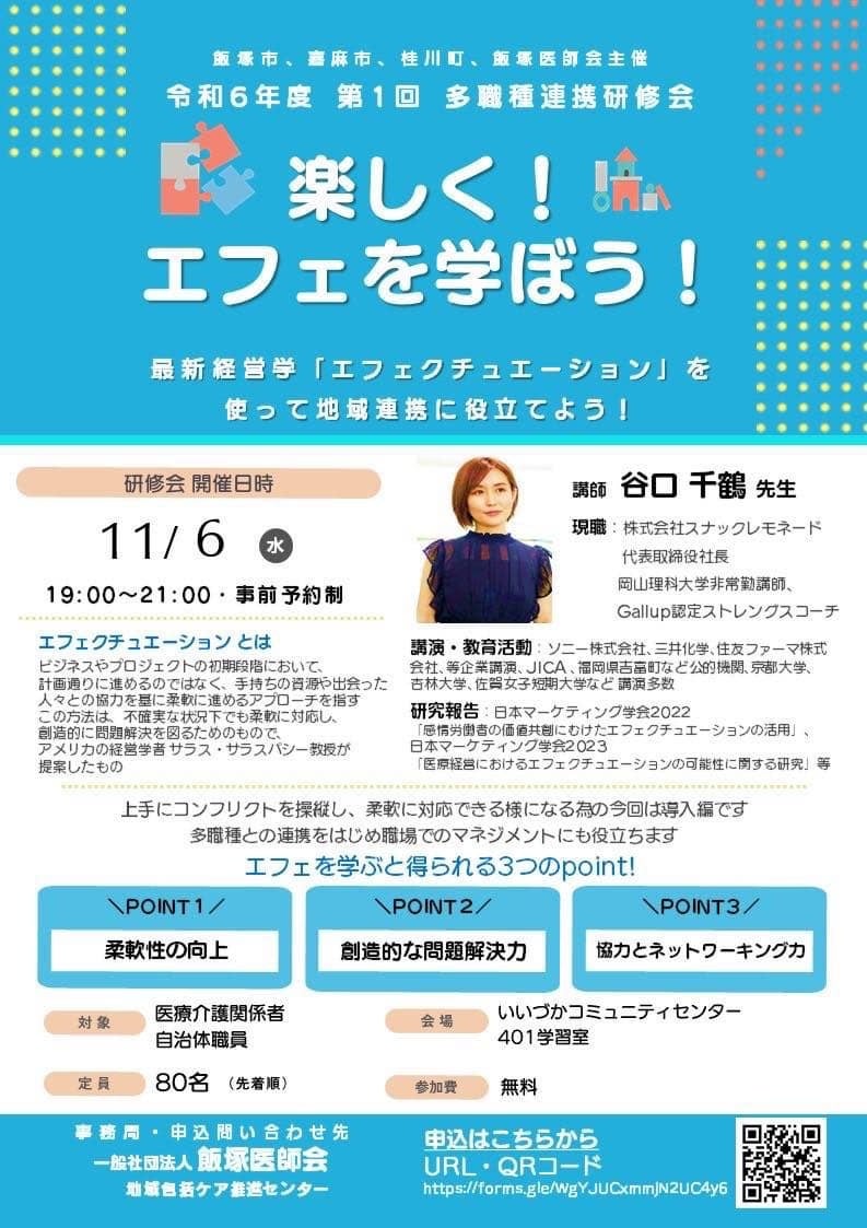 - 福岡県飯塚市医師会で地域連携とエフェクチュエーションについて講演を実施。