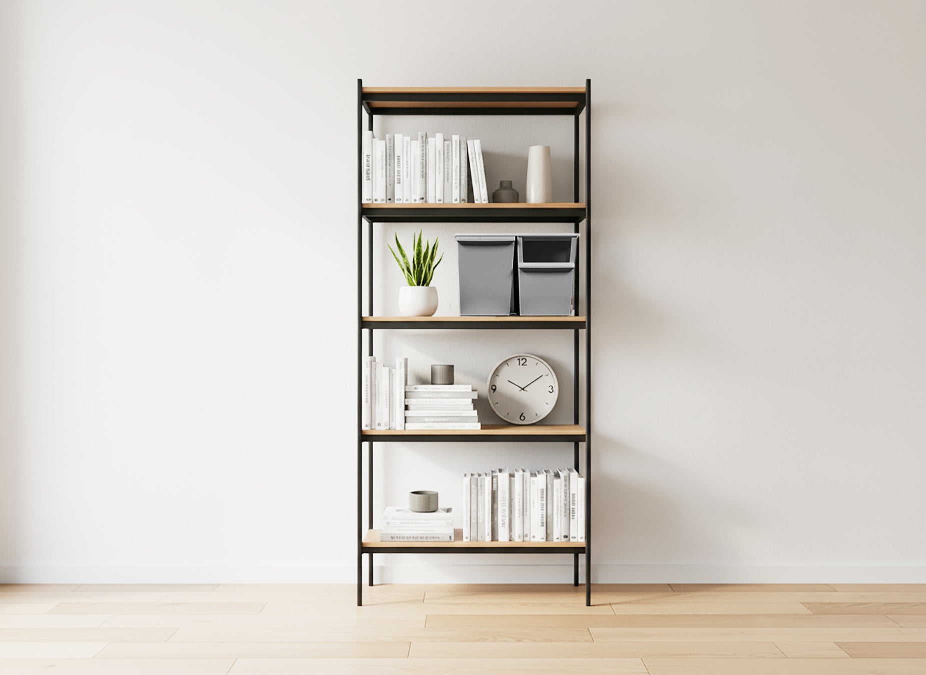 住居空間や生活様式に応じてカスタマイズができるオープンシェルフ。ライクイットの収納用品に合わせたサイズ設計。デザイン性の高い収納用品と組み合わせ使うことで、効率的で美しい“見せる収納”を実現。
