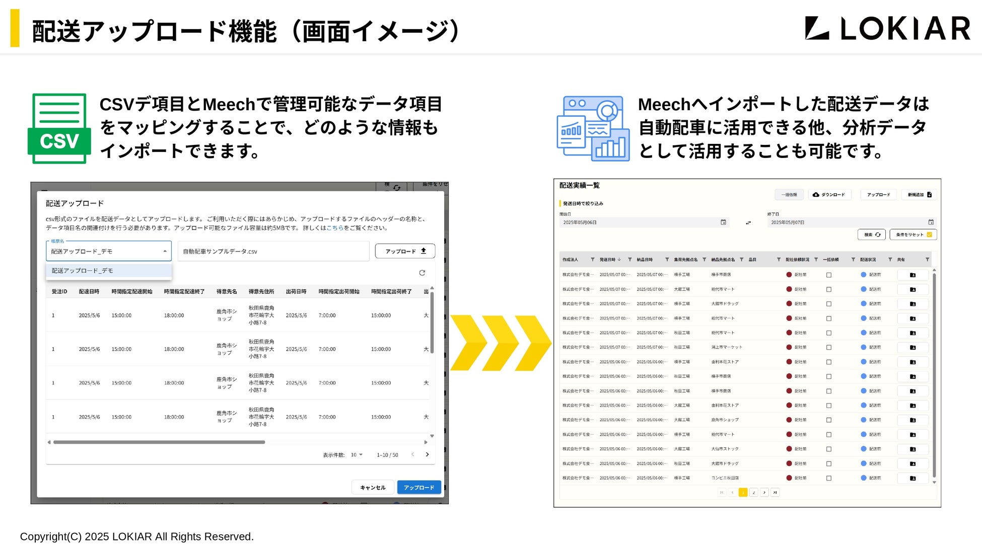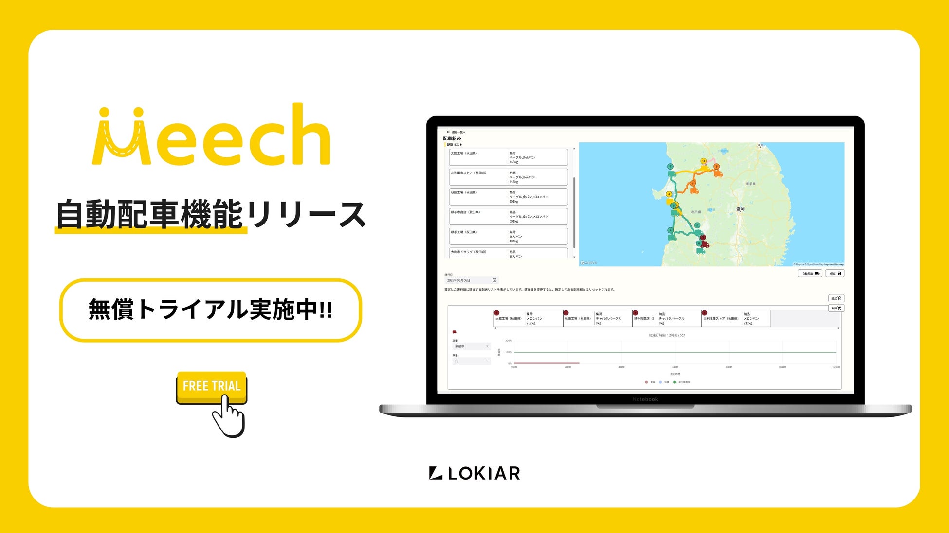 株式会社LOKIAR(本社:東京都北区、代表取締役:伊藤 健太、以下「弊社」)は、物流管理サービス『Meech』において、配送業務で最適な配車手配とルート設定を自動化する新機能「自動配車機能」を提供開始したことをお知らせいたします。