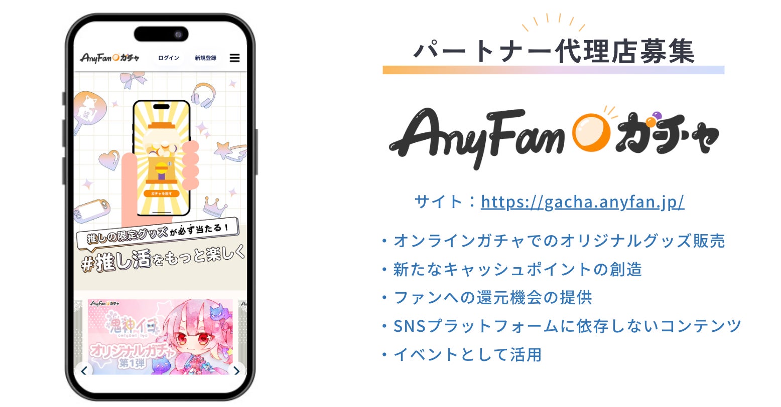 【パートナー企業募集】推しのグッズが必ず当たる「AnyFan Gacha(エニファンガチャ)」〜パートナー企業・営業代理店〜