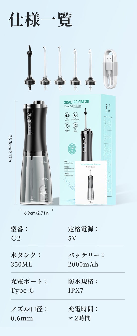 1.革新的!ビジュアル口腔洗浄器、WIFI接続の専用アプリでリアルタイム観察でき、写真・動画が可能です。