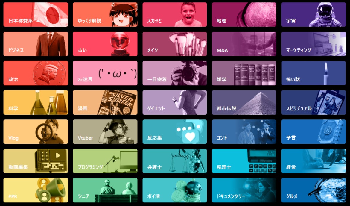 過去にそのジャンルでヒットした動画のサムネイルや企画の推移を網羅的に分析可能!