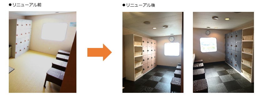 喫煙コーナーのリノベーションやレストランテーブルの傷直し、シャワーブースの床面貼り換え、客室テレビの大型化(デラックス・スタンダード4名部屋のみ)など様々なリニューアルを施しています。今後も他船舶や港ターミナルも含め、安心・清潔な環境整備に取り組み、「カジュアルクルーズ」を拡充して参ります。