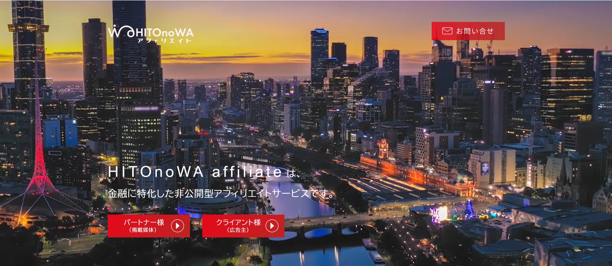 HITOnoWAアフィリエイトとは、当社が金融系(投資や資産運用など)の商品・サービスに特化して提供するASP※サービスの名称です。金融・投資に関わる事業を行う企業様(広告主様)とSNS等で投資に関する情報発信を行っている投資系インフルエンサー様をマッチングし、その先にいる一般の方々がより価値の高い金融・投資情報にアクセスできるようにすることで、日本の皆さまに「金融リテラシーの向上」や「経済的に自立した暮らし」を実現していただくことを目指しています。