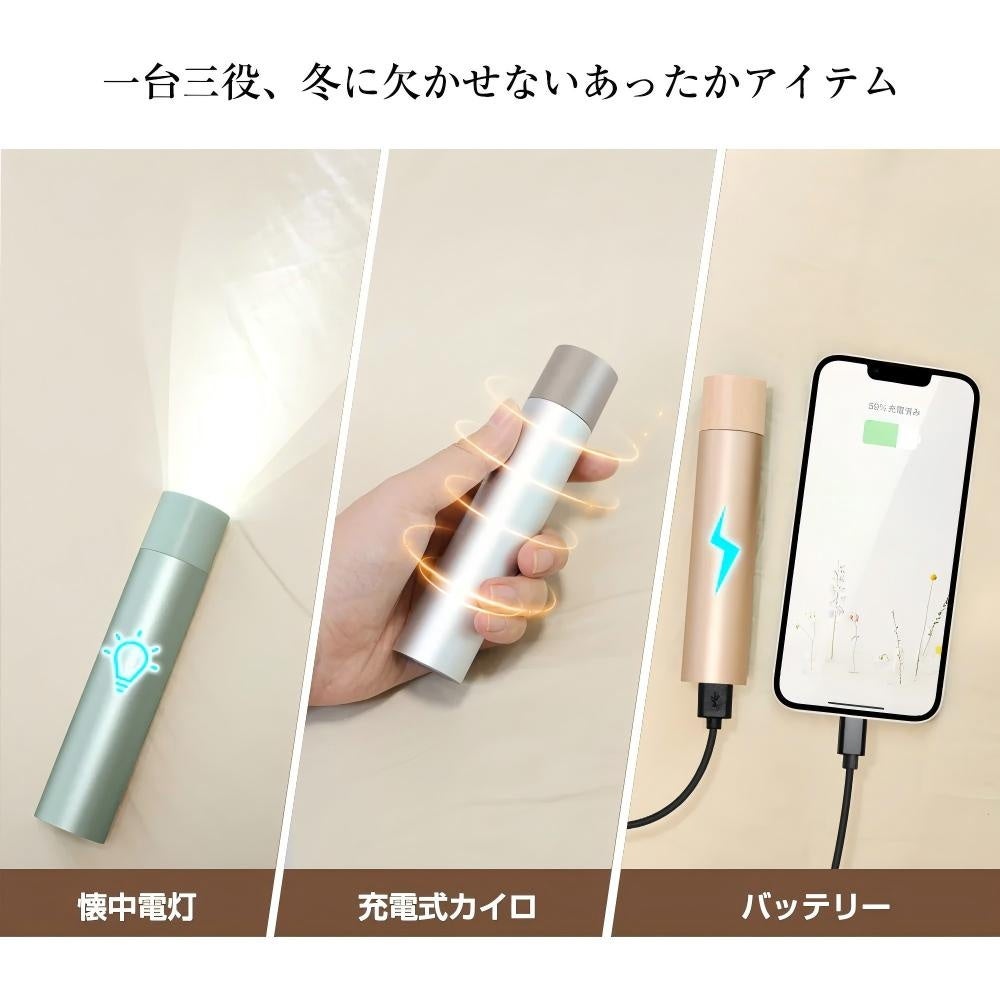 カイロ、懐中電灯、モバイルバッテリーの3つの機能を1つにまとめた多機能アイテムが登場!災害時にも頼りになる防災アイテムとしても活躍します。