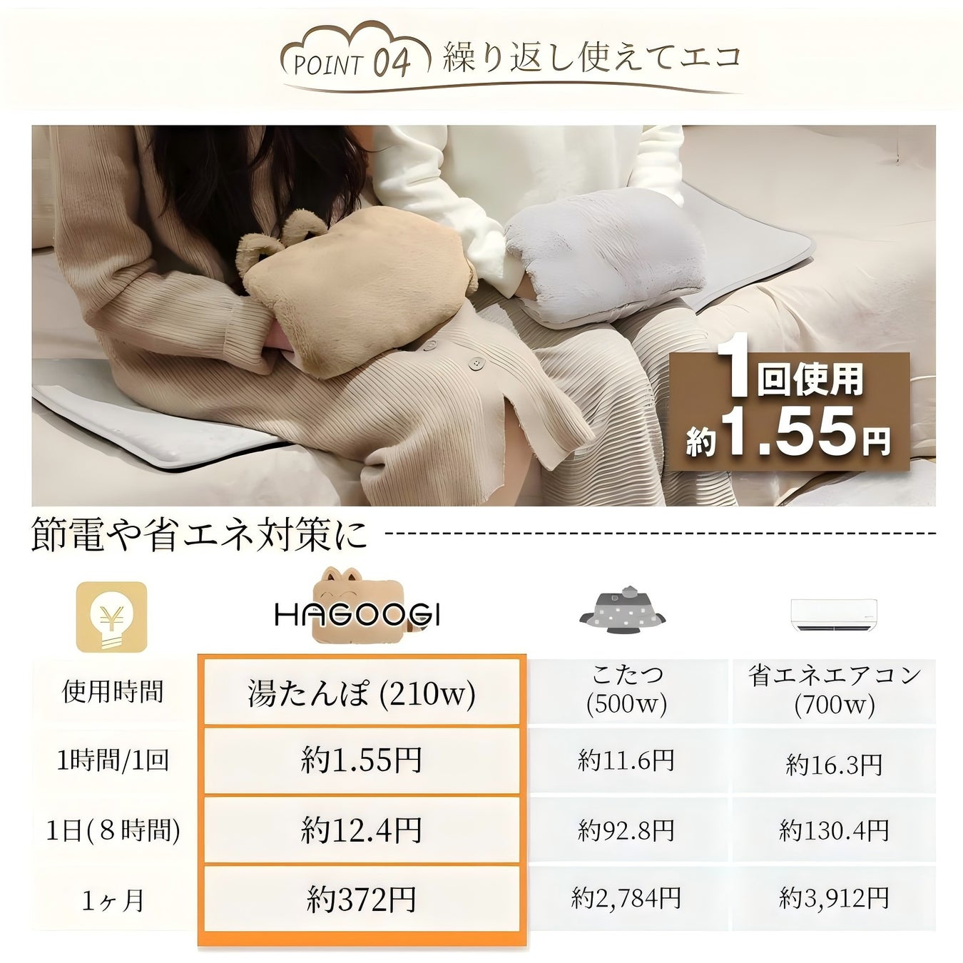 さらに、1時間あたりの電気代はわずか5.4円!電気代が高くなる現代において、非常にありがたい節約アイテムです。