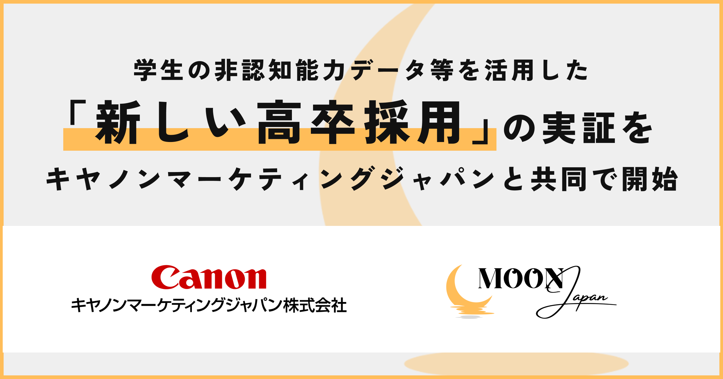 株式会社MoonJapanは、キヤノンマーケティングジャパン株式会社とMOUを締結し、生徒の非認知能力等のデータを活用した、新しい高卒採用モデルの構築に向けた取り組みを開始しました