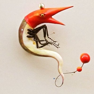 道化の虫。この虫はピエロの仮面のような模様があり、緊張した時や怖くなった時、色々な時についつい本心を紛らわすためにふざけてしまう。私の中の心の虫シリーズの一つ。形にすると何だか自分の仲間のように思えてきて、心強い。