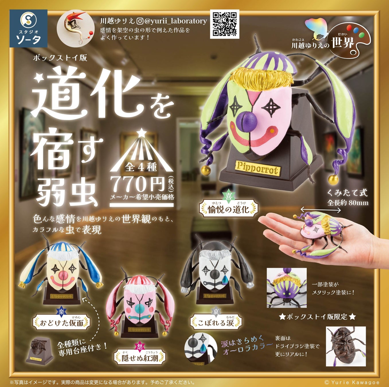 玩具メーカーのスタジオソータ(本社:東京都渋谷区、代表:安藤こうじ)は、川越ゆりえ×スタジオソータ「川越ゆりえの世界 道化を宿す弱虫」(カプセルトイ:500円(税込)/ボックストイ:770円(税込))を、2024年6月に発売することをお知らせします。
