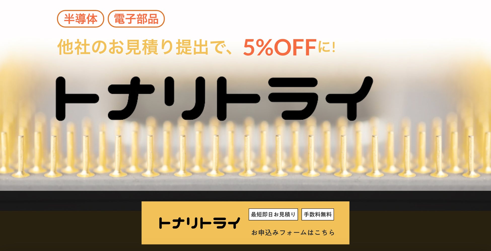 各社を比較検討した後、よりリーズナブルに半導体・電子部品を調達する最後の挑戦(トライ)として、ぜひトナリトライをご利用ください。