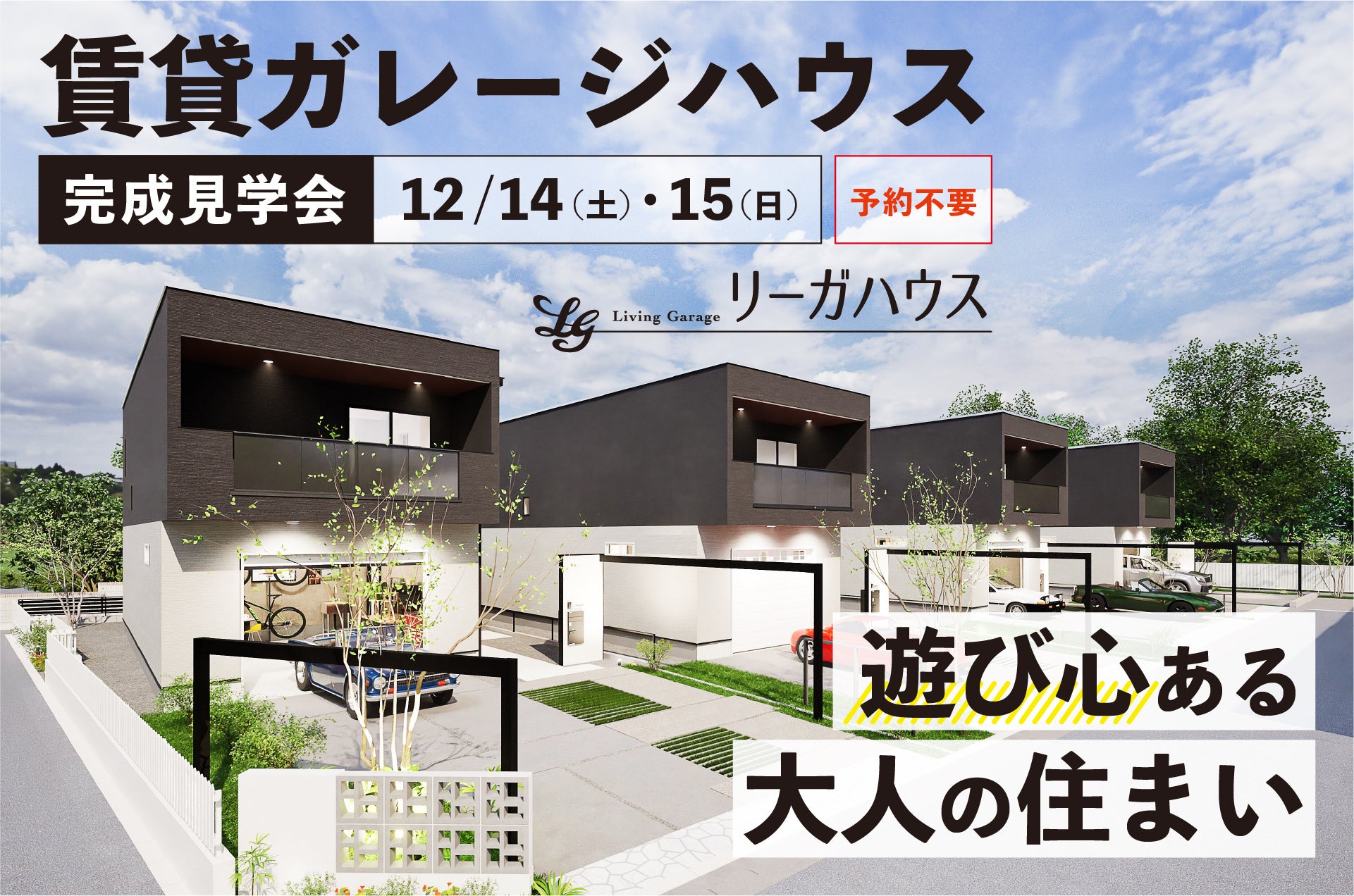 木製キット小屋・ガレージ販売の国内最大手「グリーンベル」が手がける、賃貸ガレージハウス「リーガハウス七沢」の完成見学会を山梨県甲府市にて12/14,15で開催!