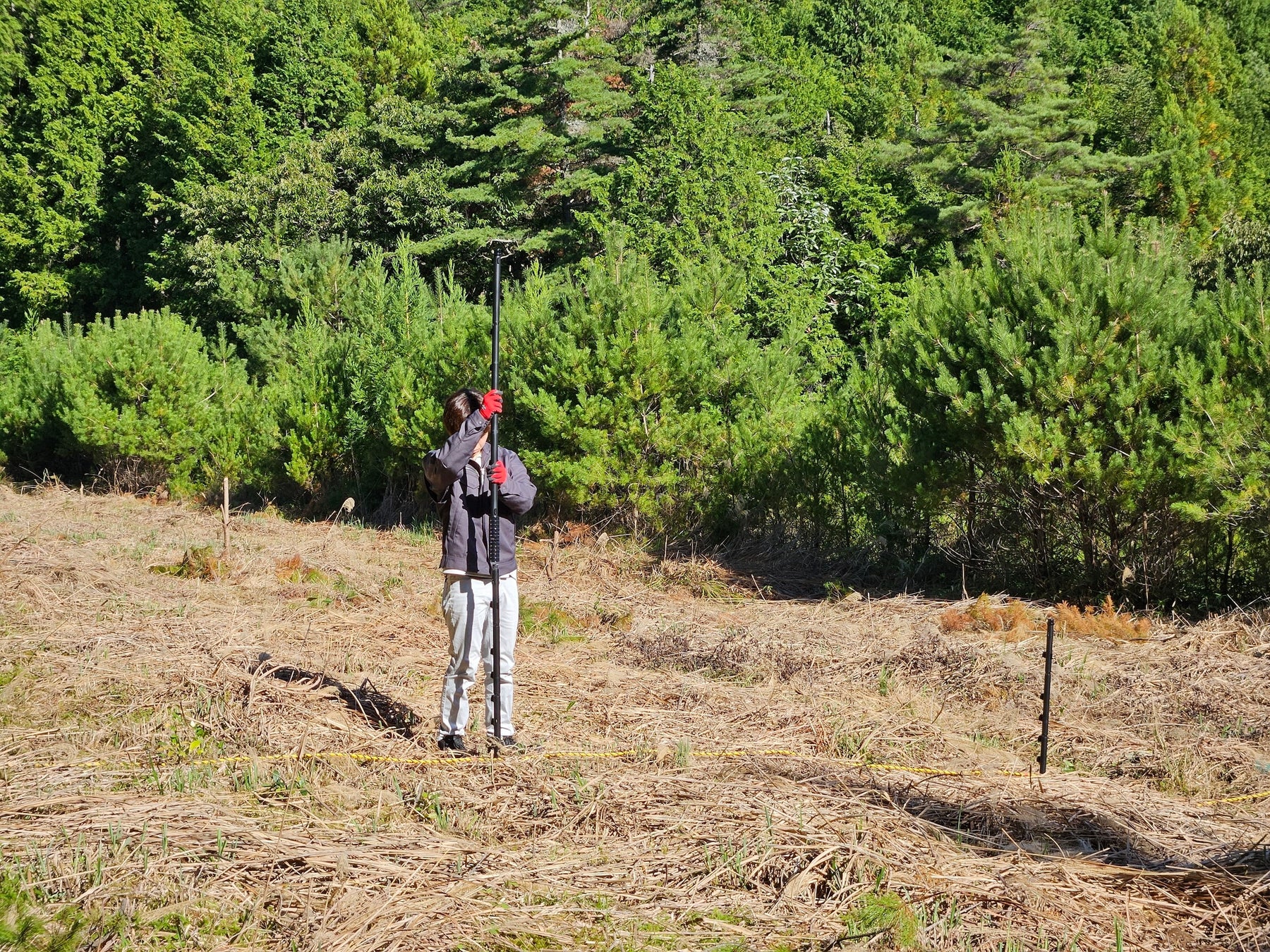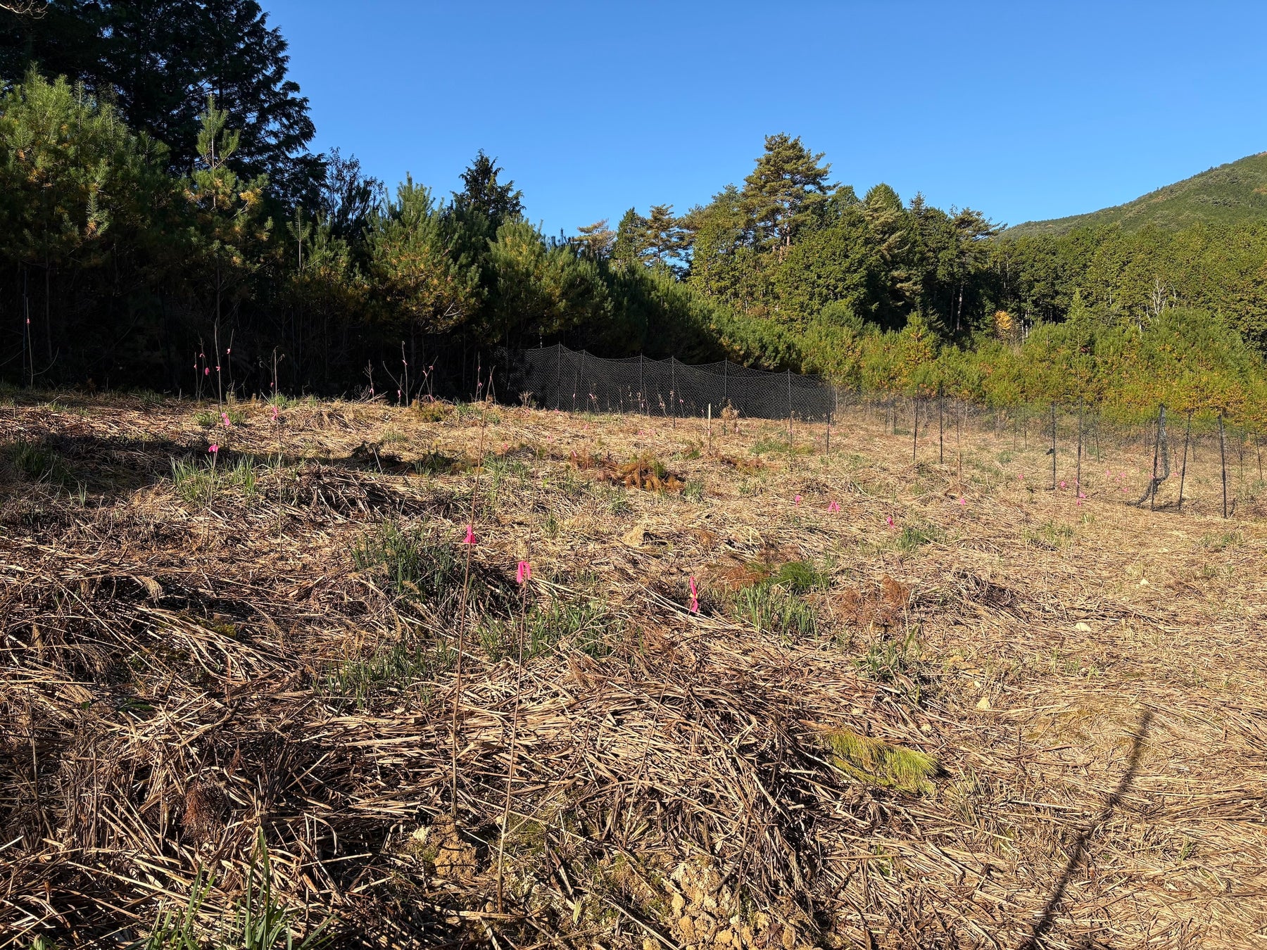 今回の事業では栽培地として「森林エリア」と「茶畑エリア」の2ヶ所で行い、合計面積は約1.5haです。木の樹種は2種類で合計600本以上を特別配合の土と一緒に植え付けしています。トリュフ菌の種類はアジアクロセイヨウショウロをはじめとして白と黒の合計7種類のトリュフとしました。