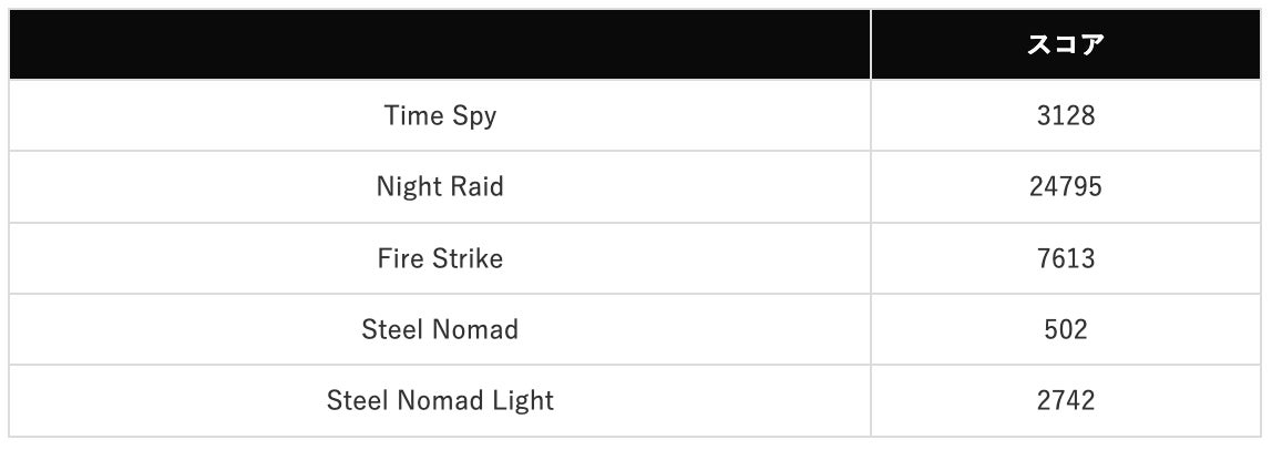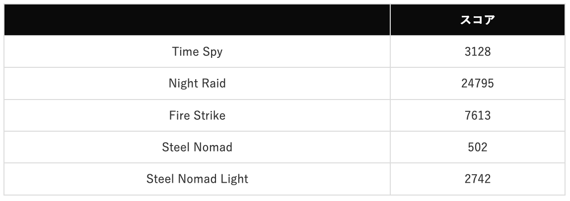 実機で測定した各種ベンチマークソフトウェアの結果を紹介します。