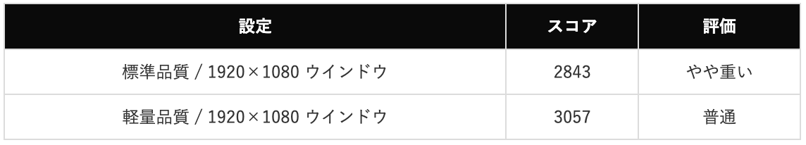 標準品質 / 3840×2160 / ウインドウ | 5633 | 快適 |