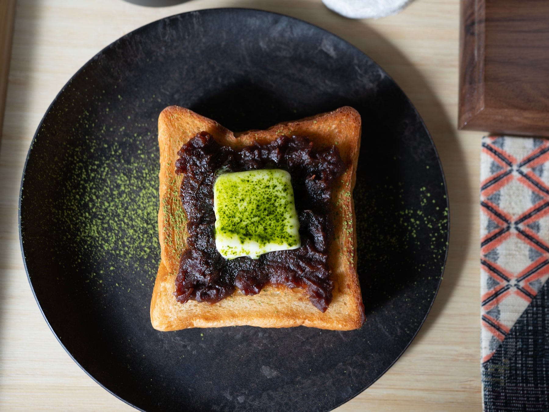 香ばしいトーストに発酵バターと砂糖不使用の発酵あんこを重ねた、体にやさしい“和のあんバタートースト”です。