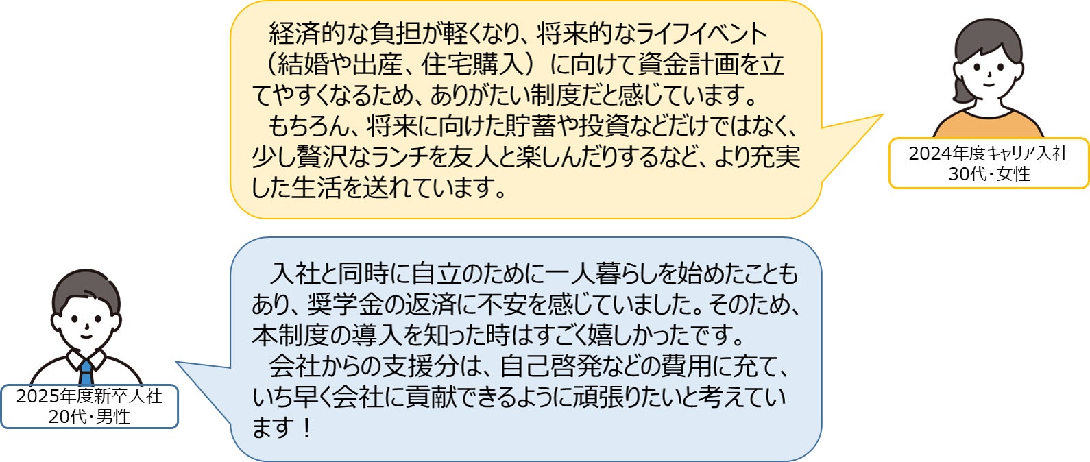 奨学金代理返還支援制度 利用者の声 ※当社社員には2025年7月より先行導入
