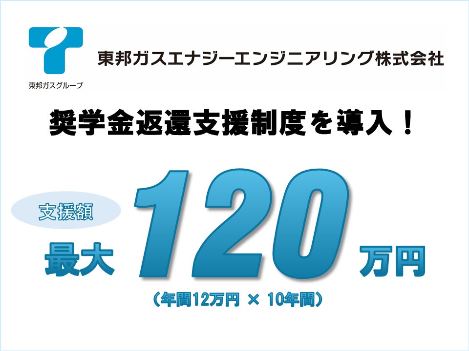 【東邦ガスエナジーエンジニアリング】最大120万円を代理返還する「奨学金返還支援制度」を導入し、安心して働ける環境を提供<奨学金返済の不安解消!>