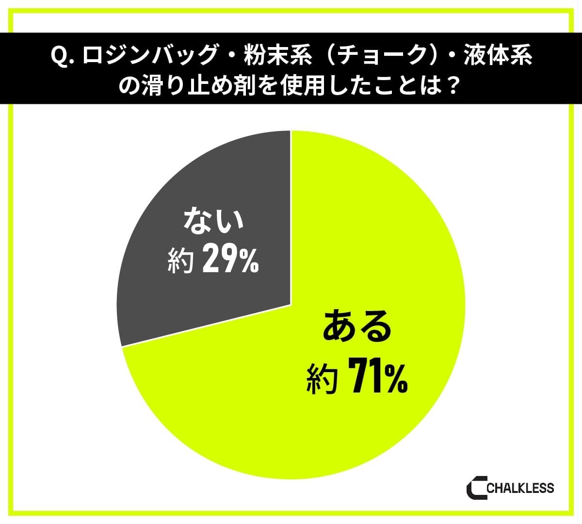 続いて野球をプレイしているときにロジンバッグやチョーク系の滑り止めなどを使用したことがあるかを質問しました。