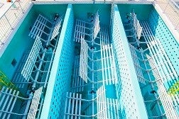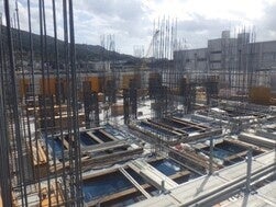 福岡市で最も古い高宮浄水場の浄水機能を乙金浄水場に統合するため、乙金浄水場の計画浄水量110,500m3/日を186,000m3/日に増強する工事を行っています。すでに「3系沈でん池」、「1系急速ろ過池」、「排泥池・洗浄排水池」、「濃縮槽」、「薬注受電棟」等は整備を完了し、現在は、「2系急速ろ過池」「排水処理棟」の構築、「1系沈でん池」の躯体改修・機械設備の更新、「着水井」と「1系沈でん池」を結ぶ配管工事など浄水場内の各所で並行して工事を実施しており、2027年2月の完工を目指しています。