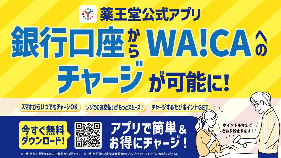 薬王堂公式アプリ、銀行口座からWA!CAへのチャージが可能に
