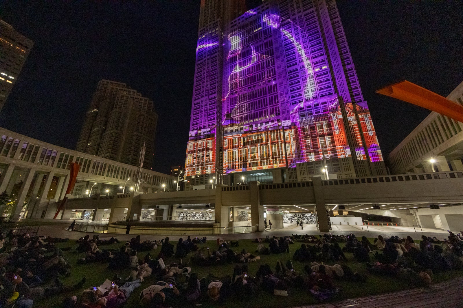 東京都では、夜間の観光振興の活性化に向けて、東京の夜を彩る新たな観光資源を作るため、代表的なランドマークである都庁第一本庁舎をキャンバスに光と音で多彩なアートを表現するプロジェクションマッピングを通年で上映しており、これまでに約43万人※の方にご来場いただいております。