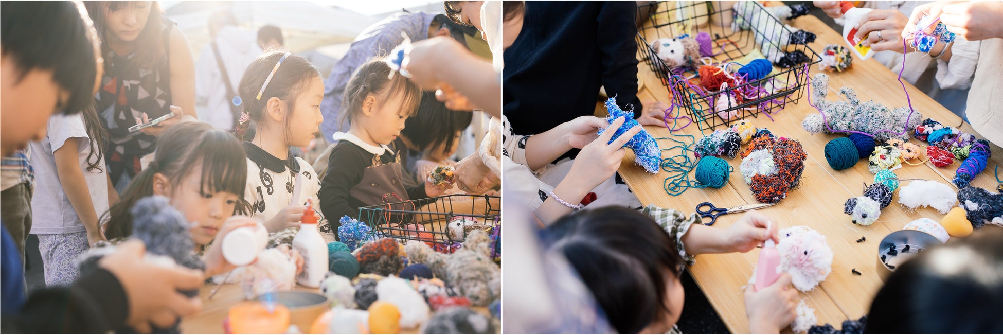高岡龍谷高校×ツギノテのコラボレーションで生まれた特別エリア。毎年たくさんの子どもたちで賑わう人気のキッズスペースが、今年は“工作し放題”の広場にパワーアップ!工場から集めたユニークな素材を自由に組み合わせて、自分だけの作品をつくることができます。さらに素材の重さ当てゲームや、音だけでマラカスの中の素材を当てるミニゲームなど、子どもたちの自由な発想と笑顔があふれる空間です。(協力|ママスキー、でこりんのお絵描き教室)