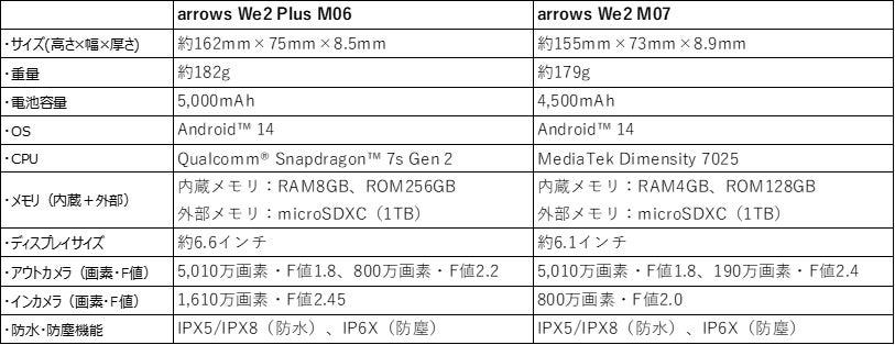 ※「arrows We2 Plus M06」「arrows We2 M07」共通