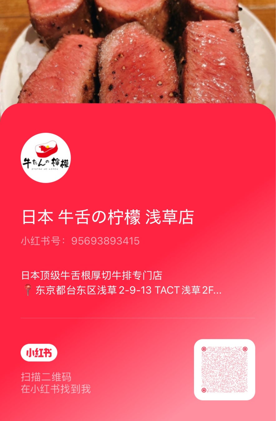 ▼牛たんの檸檬 浅草店 公式REDBOOK(小紅書)▼