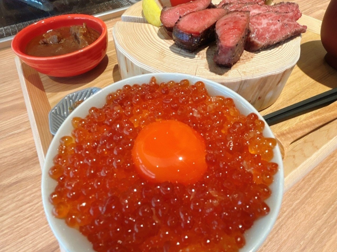 ※羽釜ご飯は、900円追加で「いくらのせ」に変更可能。熱々ご飯に特濃たまご(青森県蓬田村の坂本養鶏の十六代真っ赤卵)と厳選いくらを贅沢にトッピングします。