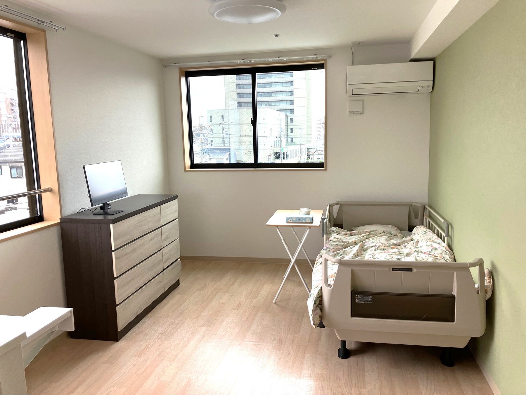 明るい個室でゆったりと過ごしていただくことをコンセプトにしました。全室個室の居室には『見守りセンサー』を導入して、プライバシーを守りながら、常時職員がサポートできる体制としています。