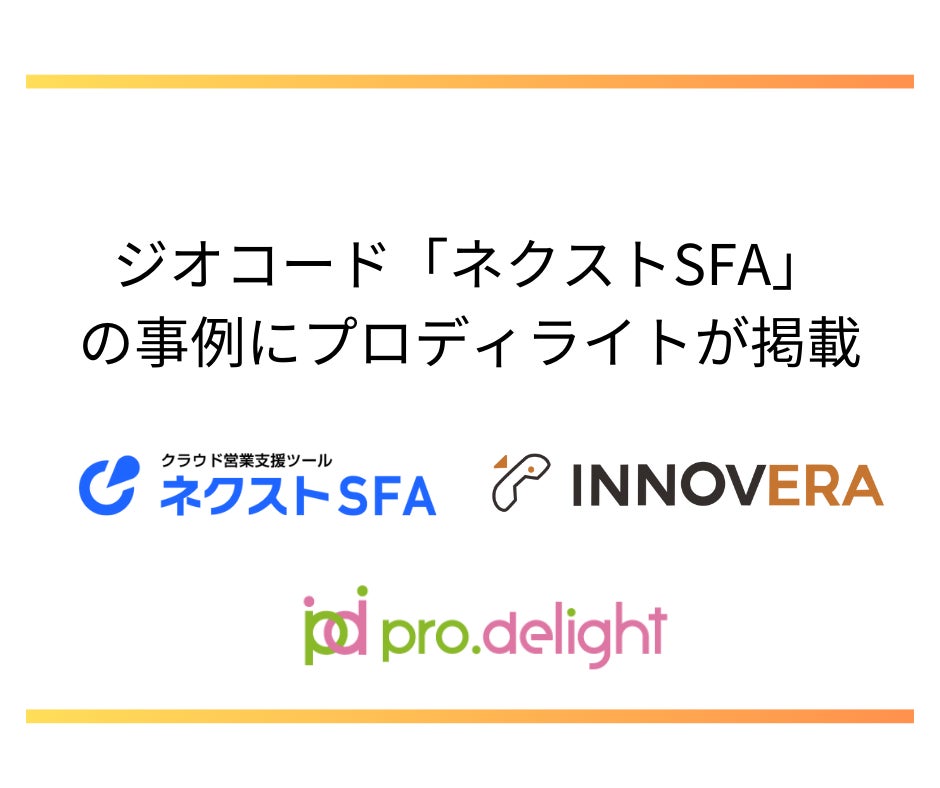 電話のDXを推進する株式会社プロディライト(大阪市中央区:代表取締役社長 小南 秀光、証券コード:5580、以下プロディライト)は2024年10月7日、Webマーケティングとクラウドセールステックを展開する株式会社ジオコード(東京都新宿区:代表取締役社長 原口 大輔、証券コード:7357、以下ジオコード)が提供する営業支援ツール「ネクストSFA」について、クラウドPBX「INNOVERA」と連携した自社導入事例して掲載されました。