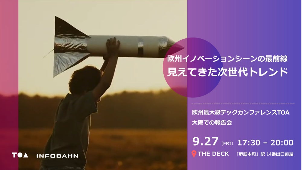 株式会社インフォバーン(以下、インフォバーン。TNLメディアジーングループ会社)は、6月に開催されたベルリンのテクノロジー・カンファレンス「TOA(Tech Open Air)」の報告会イベント「欧州イノベーションシーンの最前線、見えてきた次世代トレンド」を2024年9月27日(金)に大阪で開催します。