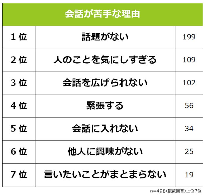 【会話が苦手な理由ランキング】社会人498人アンケート調査