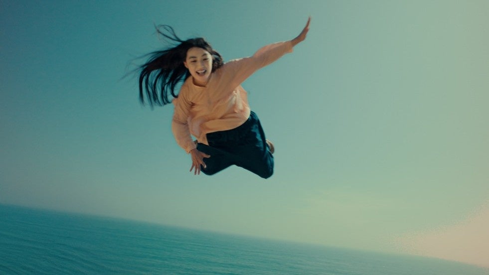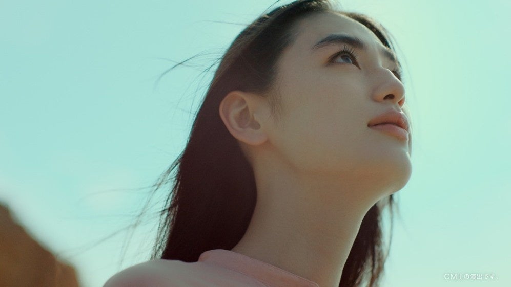 CMのストーリー:水たまりをさっと飛び越えようとしたら、自分の身体が浮遊することに気づき、海に向かって大きくジャンプ。自在に空を飛び回り、さわやかな笑顔で未来を期待する八木莉可子さん。不思議なチカラに気づいた彼女が空を自在に翔びまわる演技にご注目ください。