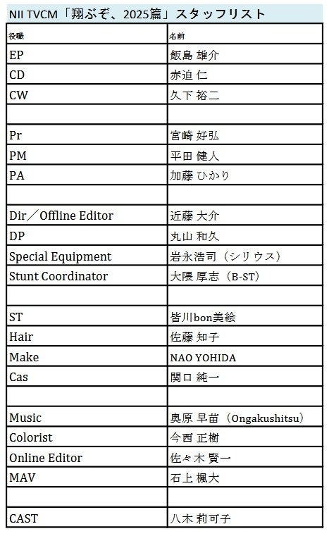 日本情報産業株式会社(本社:東京都渋谷区、代表取締役社長:下川秀樹、以下「NII」)では、2025年10月5日より、企業キャラクターの俳優・八木莉可子さんを起用した新CM「翔ぶぞっ2025篇」の放送を開始しました。