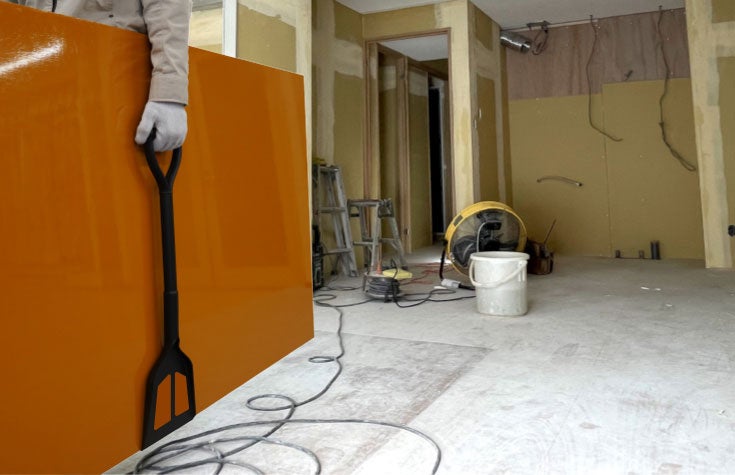 『PROLINE ボードキャッチャー』は、立った姿勢のまま建材を持ち上げ・運搬できる構造を採用。従来のように両手で抱え込む必要がなく、持ち上げ時や運搬時の身体への負担を抑えます。腰痛や疲労の原因となる前屈姿勢を減らし、高齢の職人でも無理なく作業が行えます。