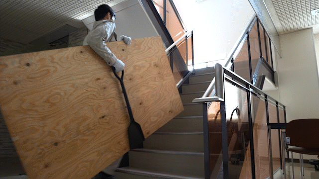 建材を胸元や顔の高さまで持ち上げる必要がないため、前方の視界をしっかり確保。ドア枠や窓枠への接触によるキズ、ガラスの破損といった事故リスクを低減し、安全性が求められる資材の運搬にも適しています。